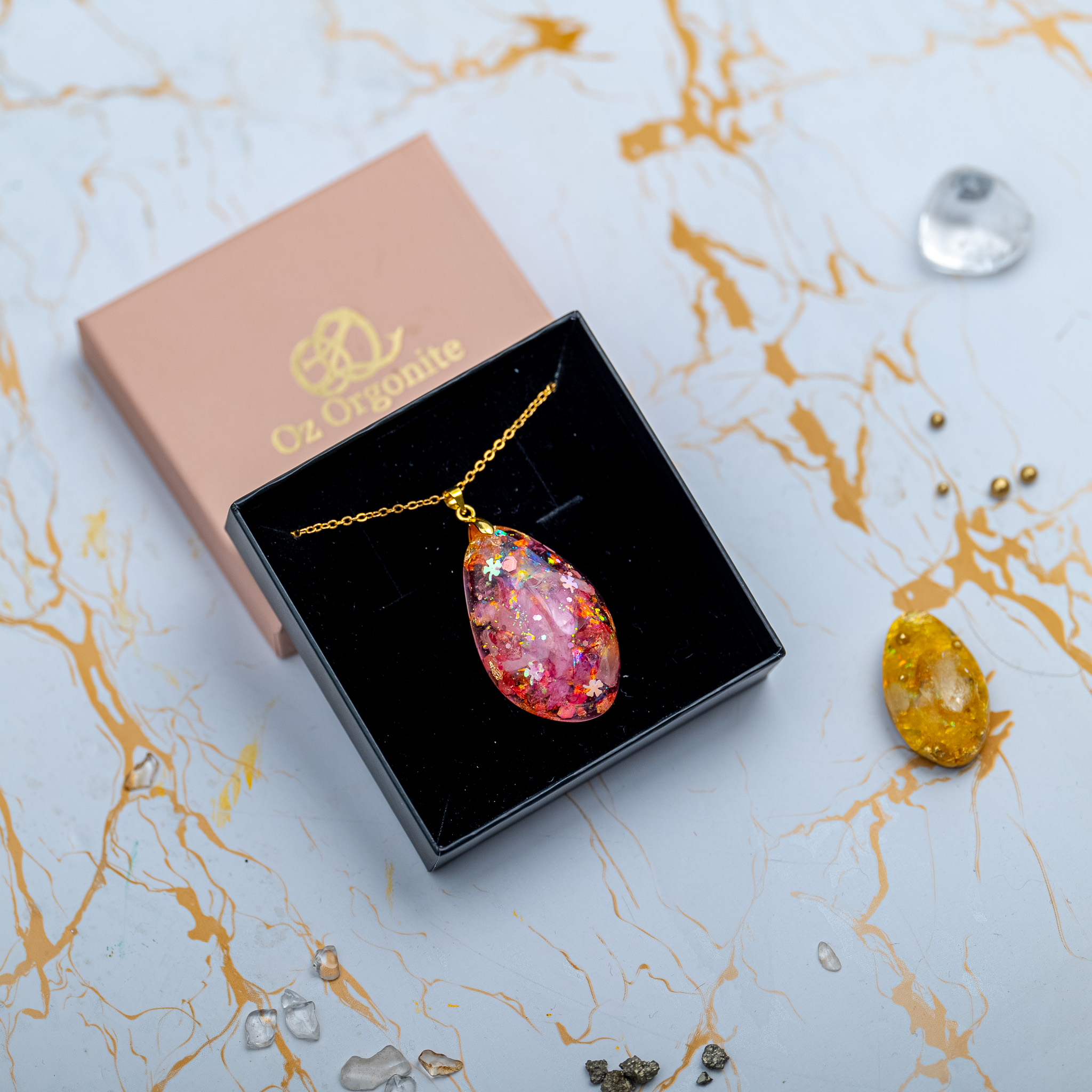 Die Herstellung unserer Orgonite ist ein alchemistischer Prozess. Jedes Stück wird mit höchster Achtsamkeit von Hand gegossen – Schicht für Schicht, Stein für Stein. Doch was Oz Orgonite besonders macht, ist die bewusste Energiearbeit während der gesamten Herstellung.