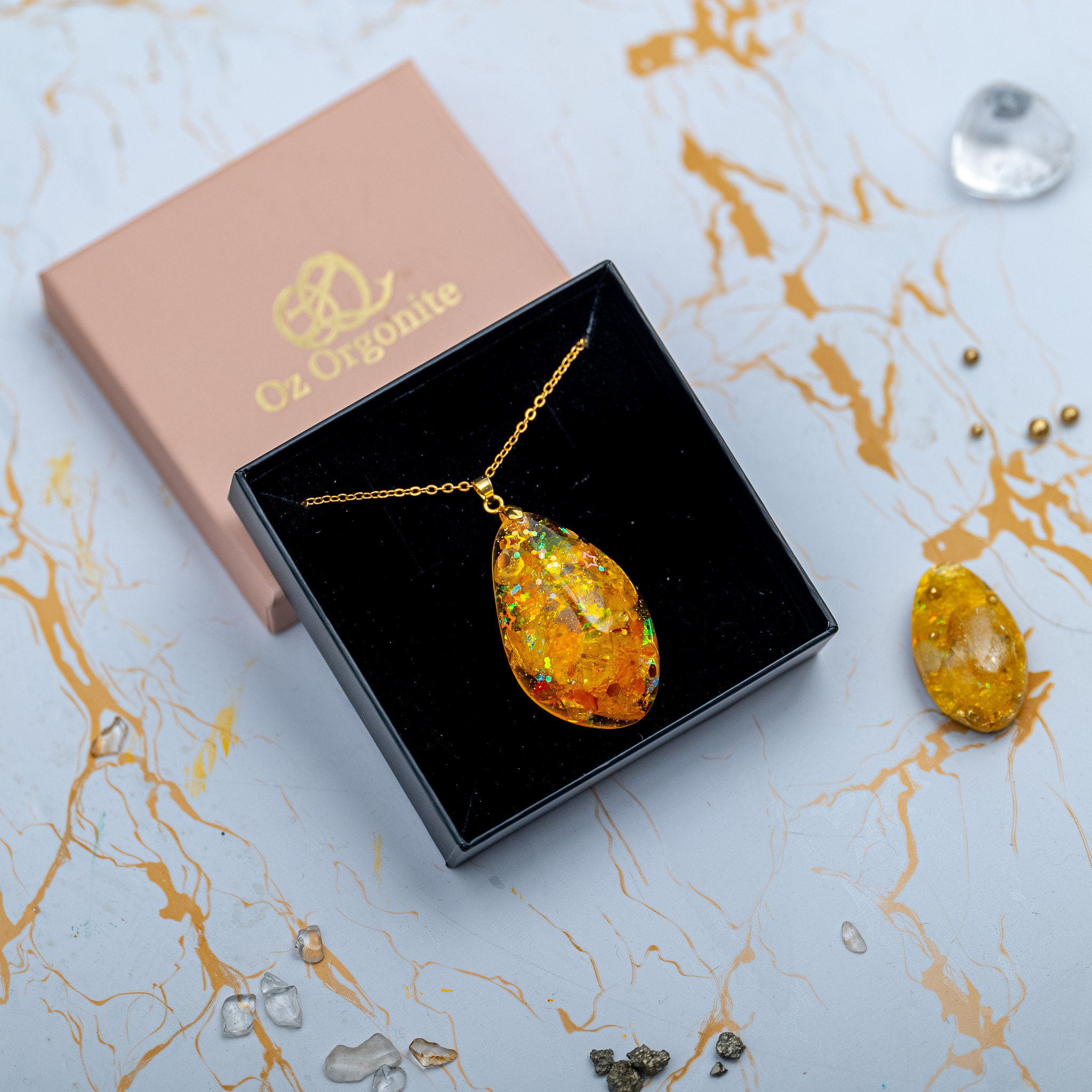 Die Herstellung unserer Orgonite ist ein alchemistischer Prozess. Jedes Stück wird mit höchster Achtsamkeit von Hand gegossen – Schicht für Schicht, Stein für Stein. Doch was Oz Orgonite besonders macht, ist die bewusste Energiearbeit während der gesamten Herstellung.