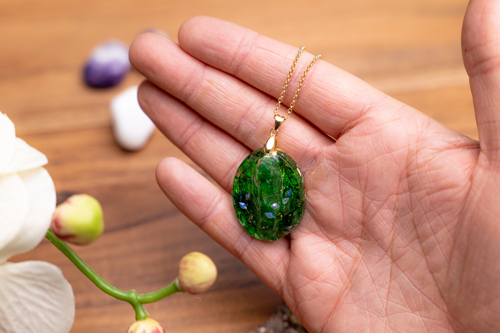 PranaAmulett Harmonie - Limited besitzt die Edelsteine Smaragd, Peridot und Malachit. Seine grüne Farbe und seine spezielle Edelsteinkombination stehen für für Heilung, Sammlung und tiefen Glauben. Seine Energie fordert uns auf, in unser Vertrauen zu gehen, und uns mit der göttlichen Heilkraft zu vereinen. Seine Kraft öffnet uns auch für die Ästhetik, Harmonie und lässt uns die verborgene Schönheit in allen Dingen wieder erkennen.