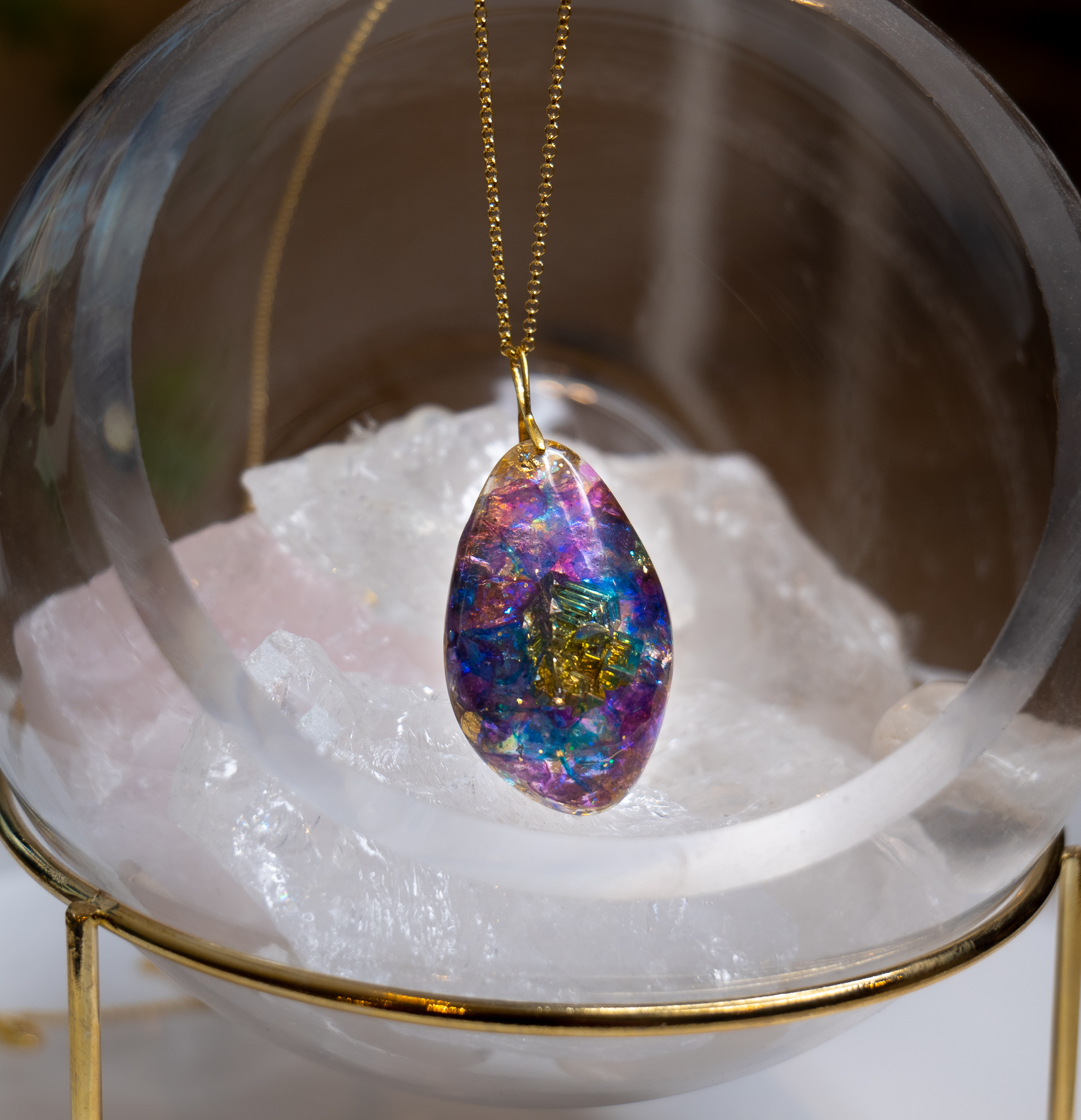 Die Herstellung unserer Orgonite ist ein alchemistischer Prozess. Jedes Stück wird mit höchster Achtsamkeit von Hand gegossen – Schicht für Schicht, Stein für Stein. Doch was Oz Orgonite besonders macht, ist die bewusste Energiearbeit während der gesamten Herstellung.