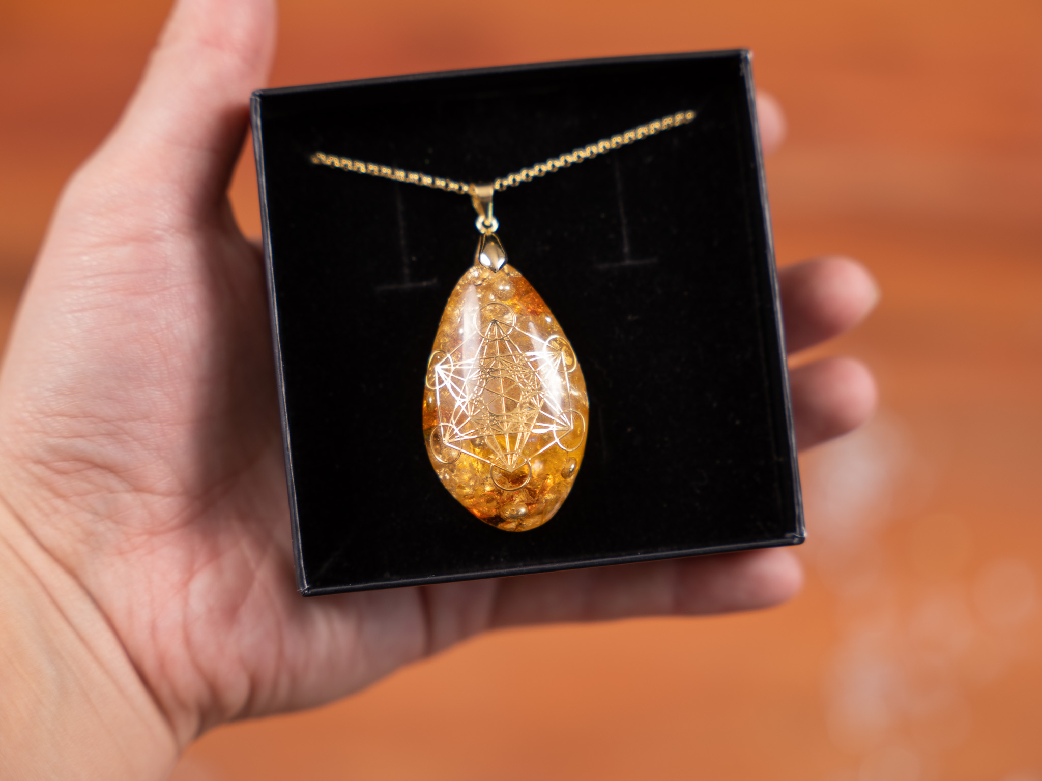 Ein Verbund aus Kunstharz, Edelsteinen und Metallen. Orgonit zieht verbrauchte Lebensenergie (Orgon) an, reinigt sie und gibt diese anschließend wieder ab. Pranatropfen® sind der ideale Begleiter für Unterwegs, bei der Arbeit und natürlich für Daheim.