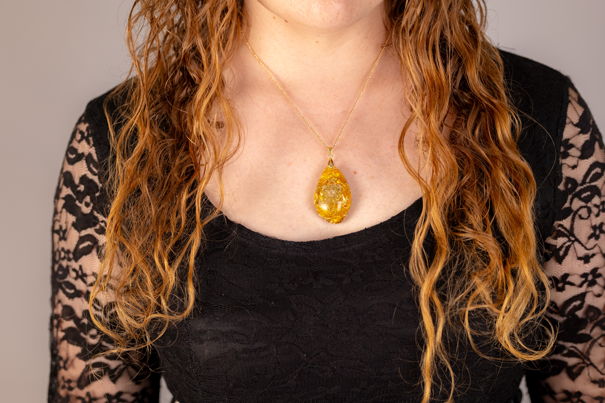 Pranatropfen® bestehen aus Kunstharz, Edelsteinen, Edelmetallen und wurden in einem mehrschichtigen Gießverfahren in der Oz-Werkstatt produziert. Alle Oz-Produkte unterliegen strengen Qualitätsrichtlinien. Pranatropfen, wie alle Oz-Produkte, werden in Handarbeit gefertigt und sind deshalb Unikate. Es können daher leichte Abweichungen in Beschaffenheit und Aussehen zu den Produktbildern existieren. Jeder Pranatropfen kommt mit einer Collierschlaufe in wahlweise Gold oder Silber, sowie einem farblich passenden Seidenband und einem hochwertigen Etui zur Aufbewahrung.