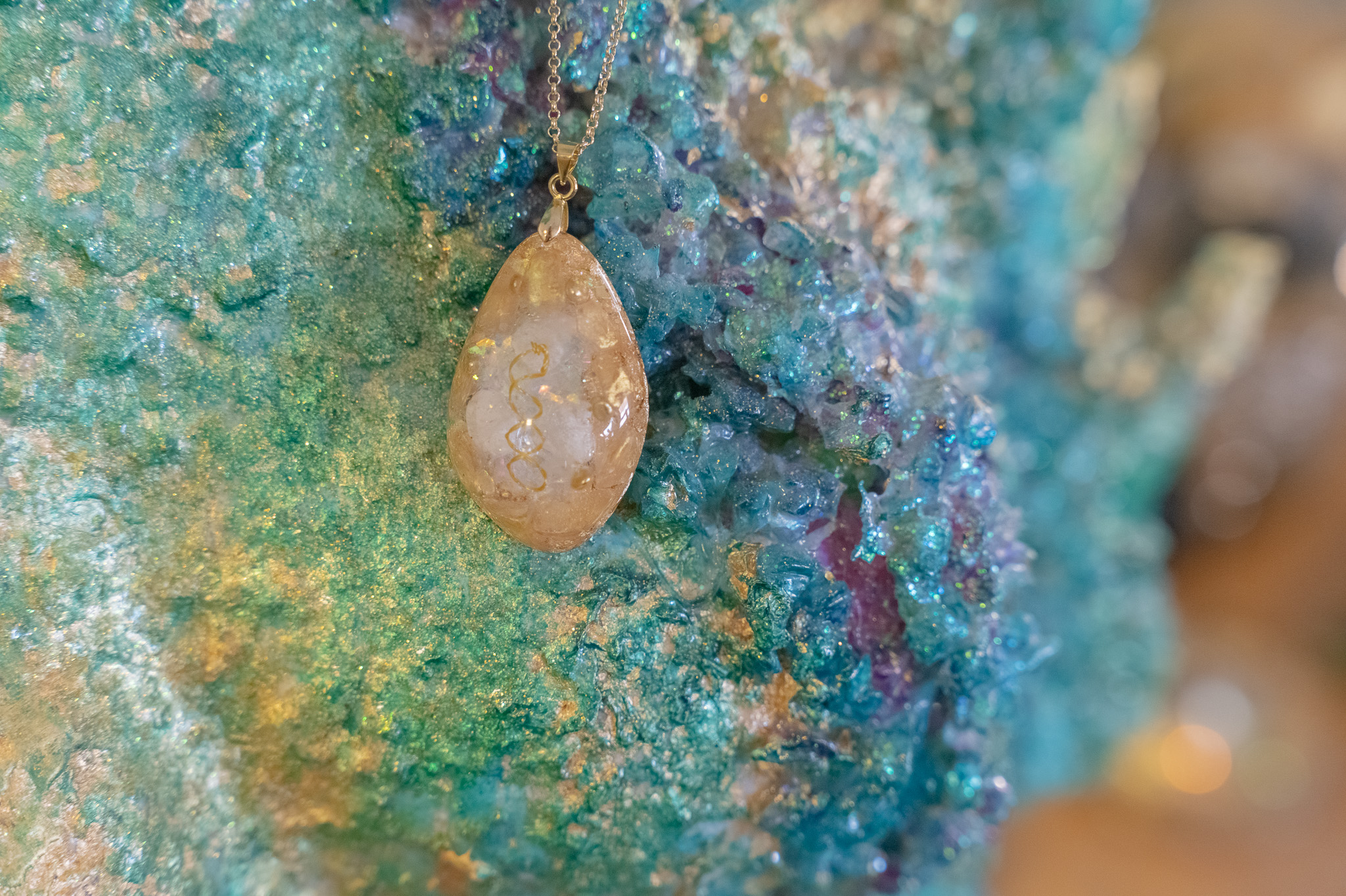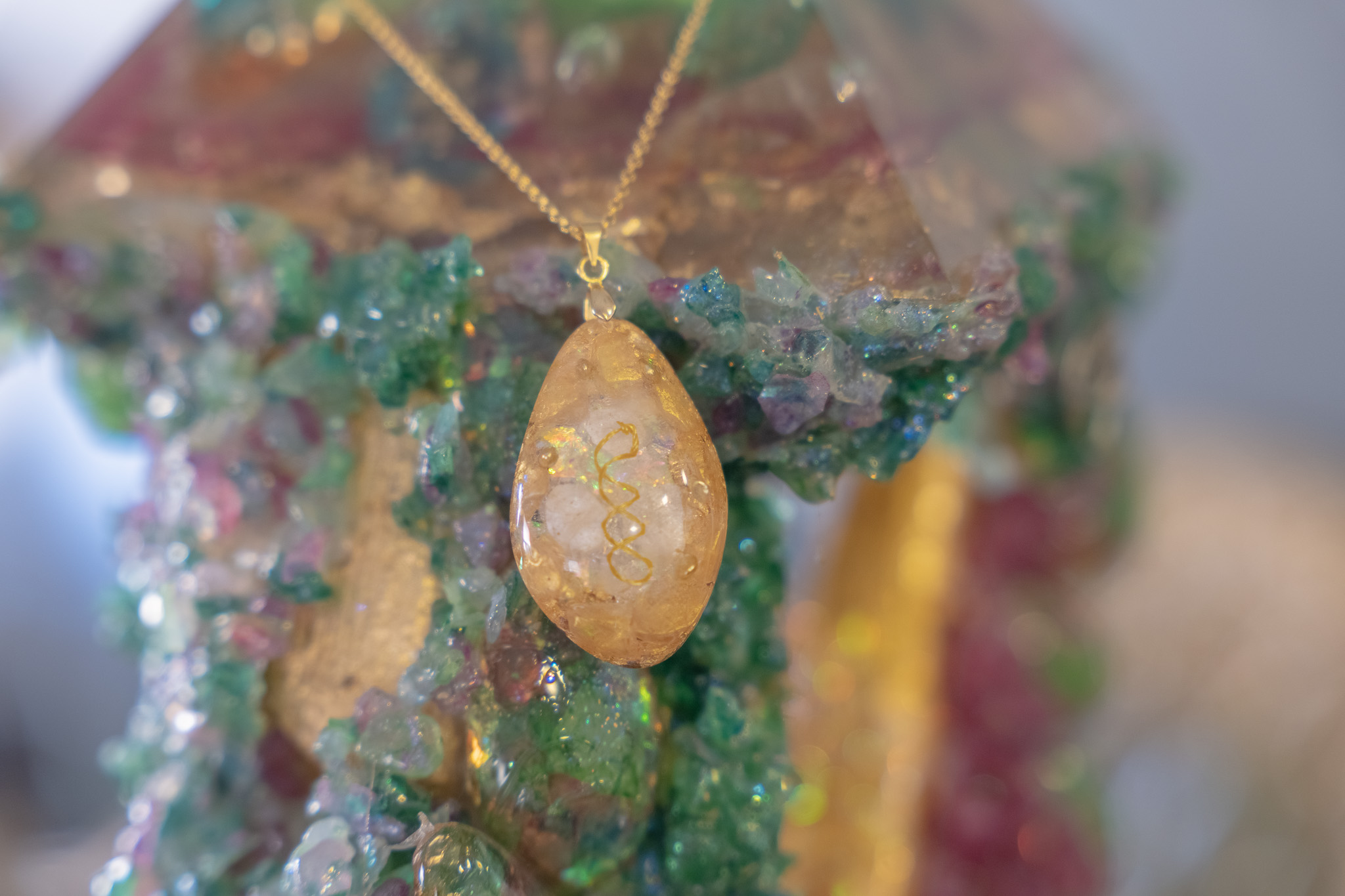 Wir verwenden echte Edelsteine, Kupfer, Silber und Gold – keine Eisenspäne. Jeder Orgonit wird von Hand gefertigt und energetisch vorbereitet.