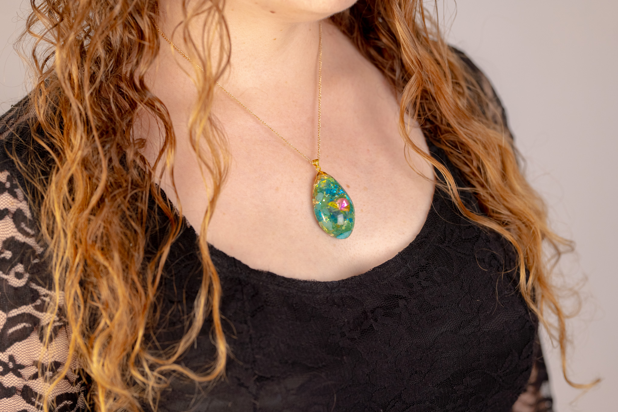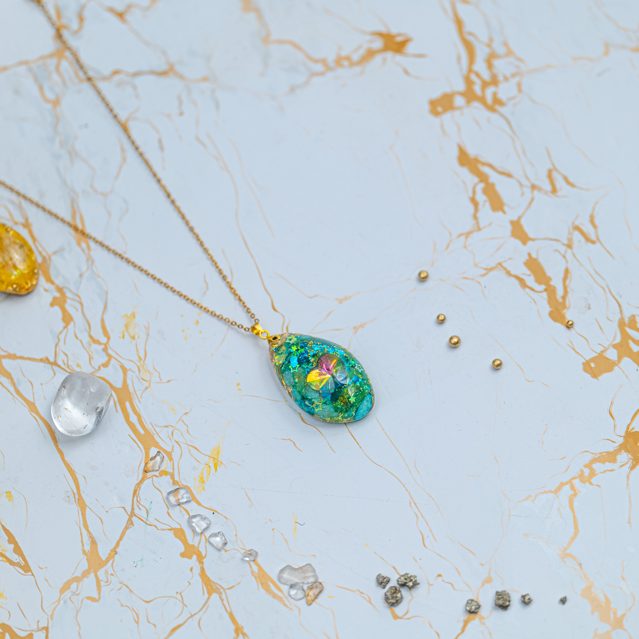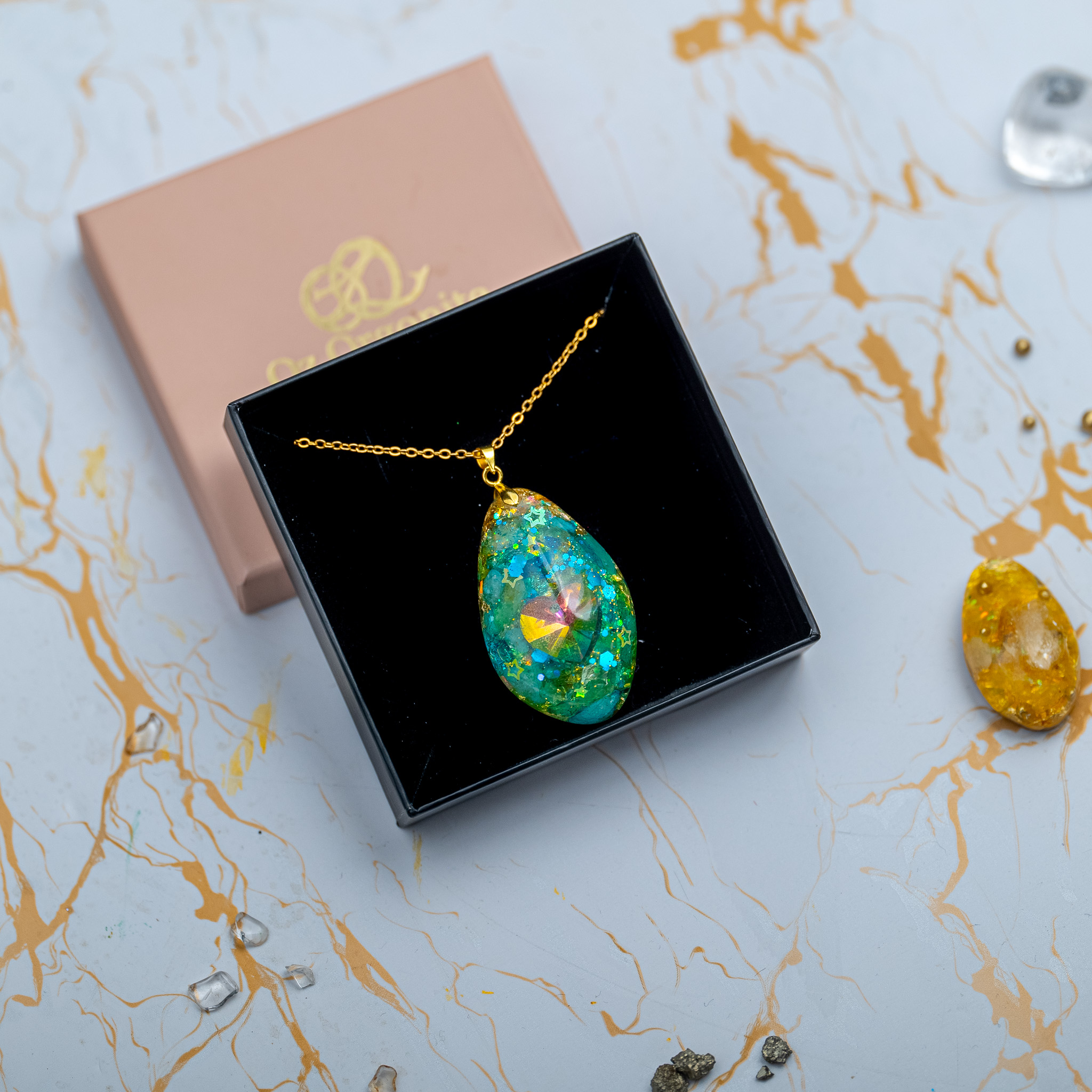 Pranatropfen® bestehen aus Kunstharz, Edelsteinen, Edelmetallen und wurden in einem mehrschichtigen Gießverfahren in der Oz-Werkstatt produziert. Alle Oz-Produkte unterliegen strengen Qualitätsrichtlinien. Pranatropfen, wie alle Oz-Produkte, werden in Handarbeit gefertigt und sind deshalb Unikate. Es können daher leichte Abweichungen in Beschaffenheit und Aussehen zu den Produktbildern existieren. Jeder Pranatropfen kommt mit einer Collierschlaufe in wahlweise Gold oder Silber, sowie einem hochwertigen Etui zur Aufbewahrung.
