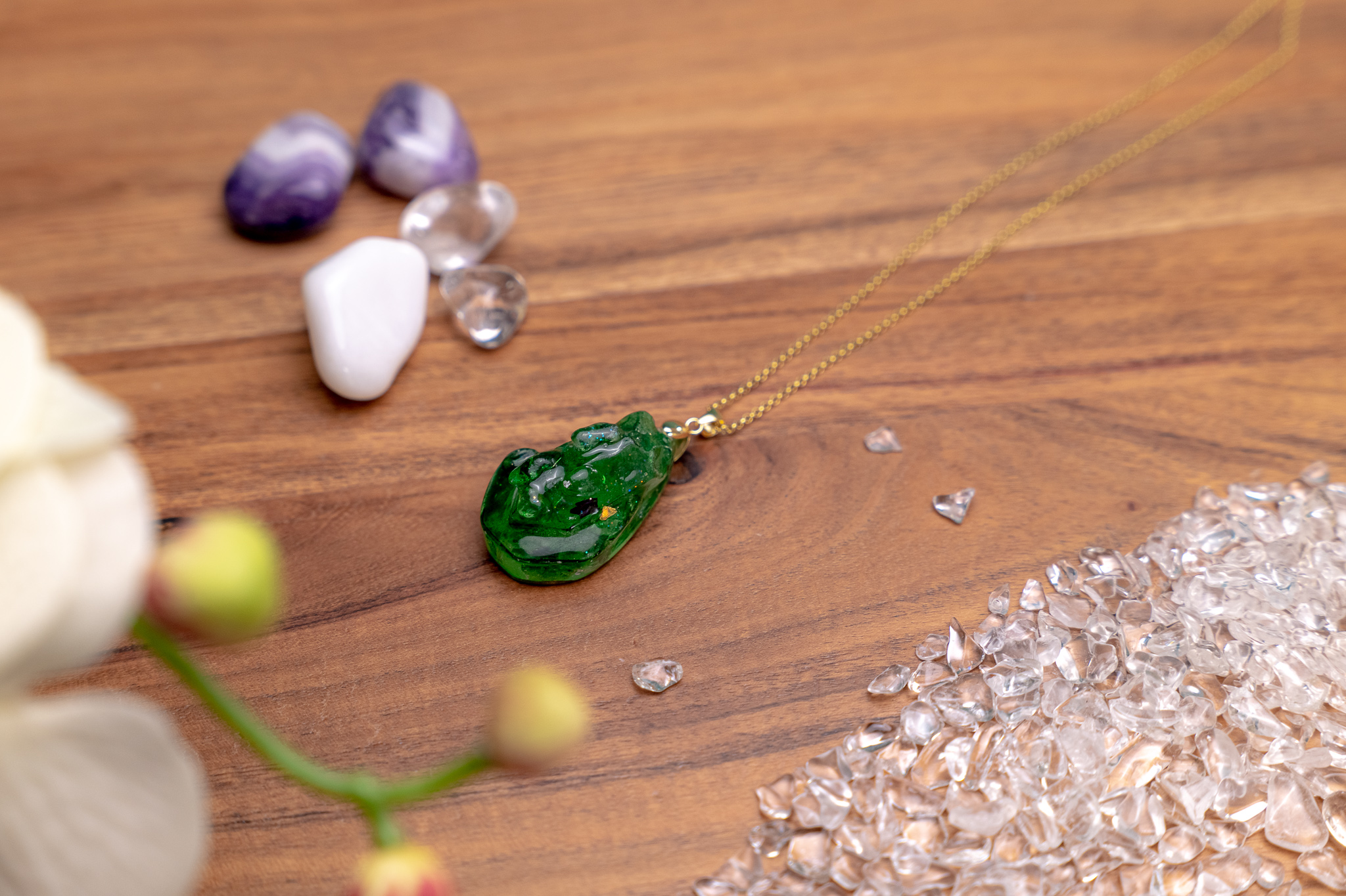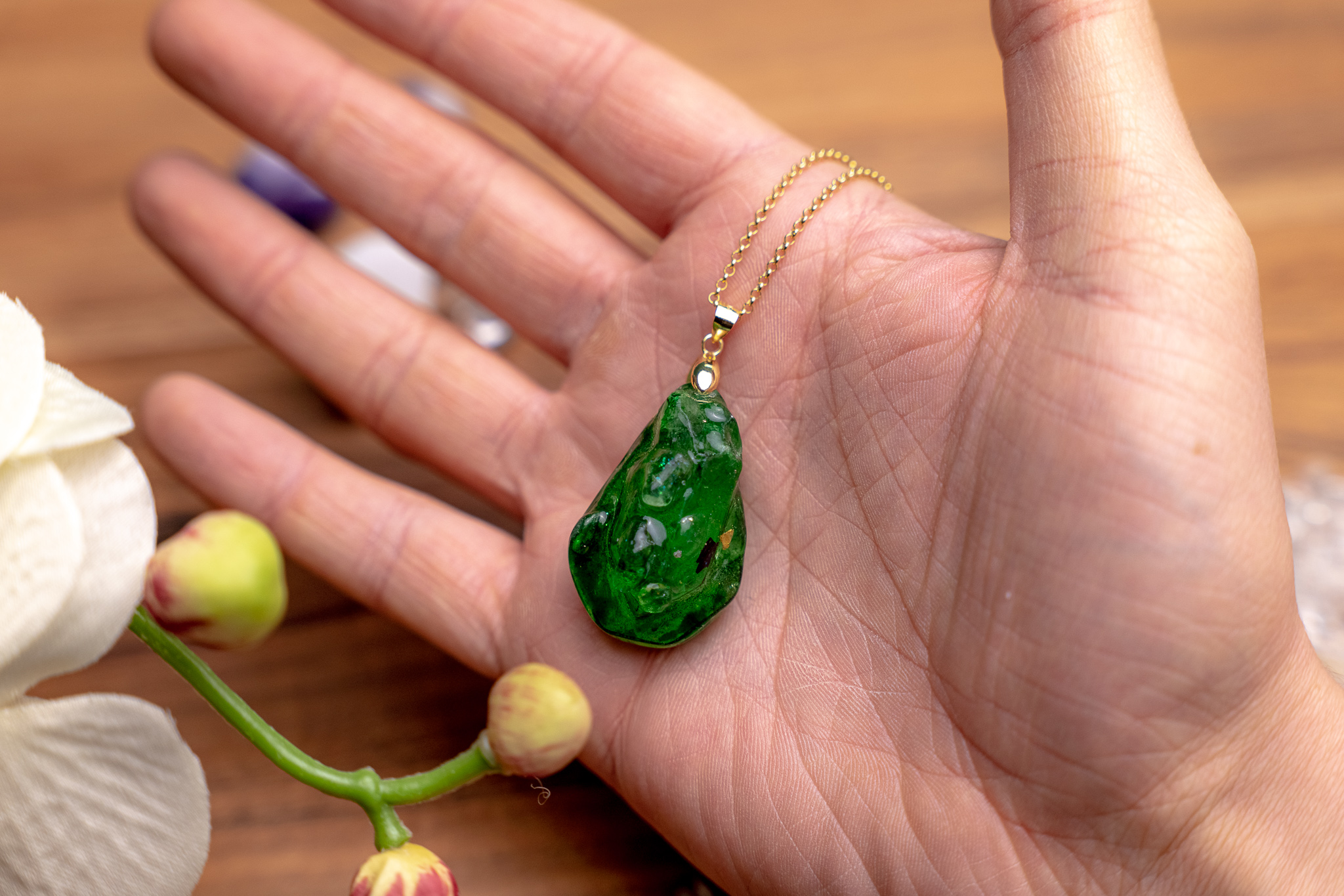 Wir verwenden echte Edelsteine, Kupfer, Silber und Gold – keine Eisenspäne. Jeder Orgonit wird von Hand gefertigt und energetisch vorbereitet.