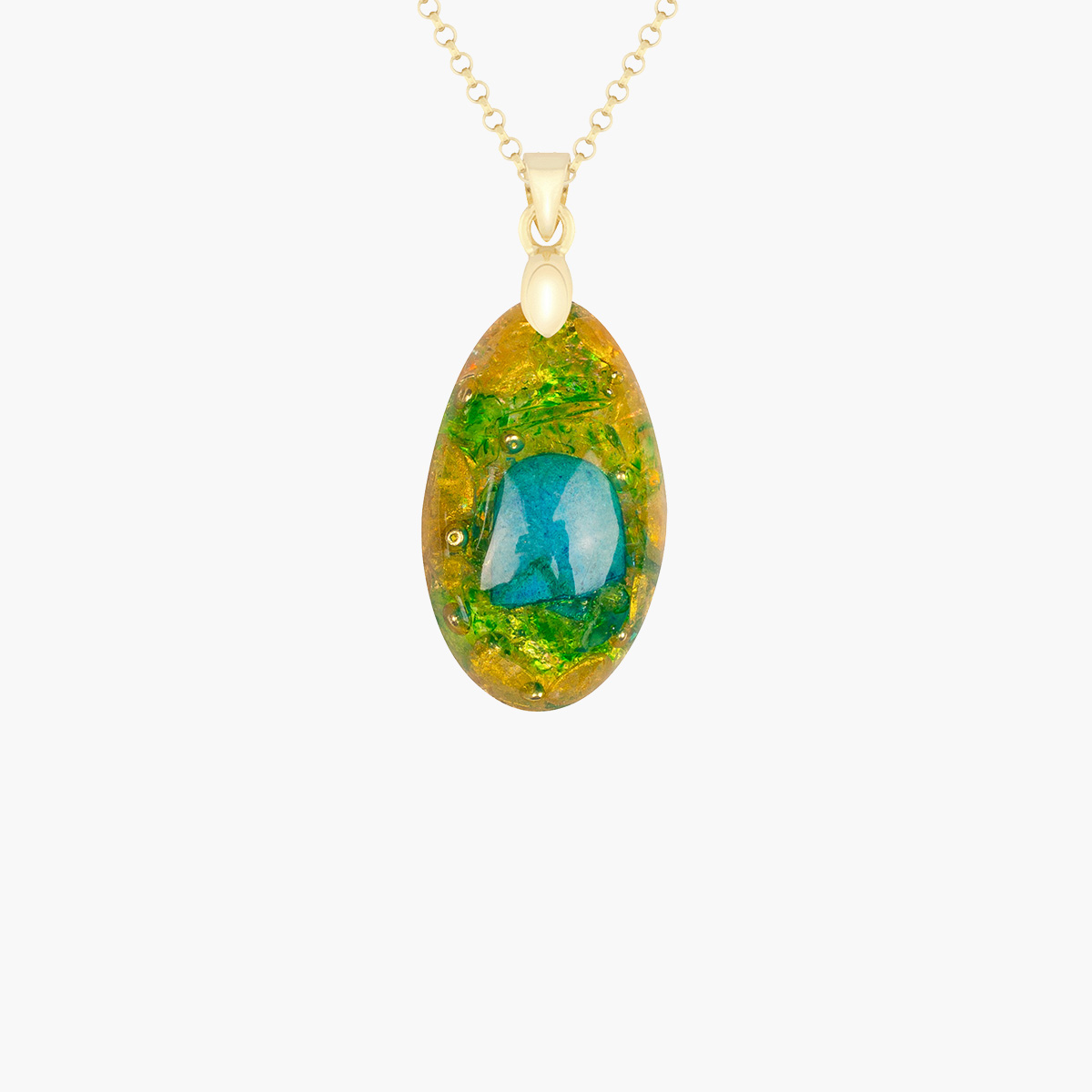 Pranatropfen® bestehen aus Kunstharz, Edelsteinen, Edelmetallen und wurden in einem mehrschichtigen Gießverfahren in der Oz-Werkstatt produziert. Alle Oz-Produkte unterliegen strengen Qualitätsrichtlinien. Pranatropfen, wie alle Oz-Produkte, werden in Handarbeit gefertigt und sind deshalb Unikate. Es können daher leichte Abweichungen in Beschaffenheit und Aussehen zu den Produktbildern existieren. Jeder Pranatropfen kommt mit einer Collierschlaufe in wahlweise Gold oder Silber, sowie einem schwarzen Seidenband und einem hochwertigen Etui zur Aufbewahrung.